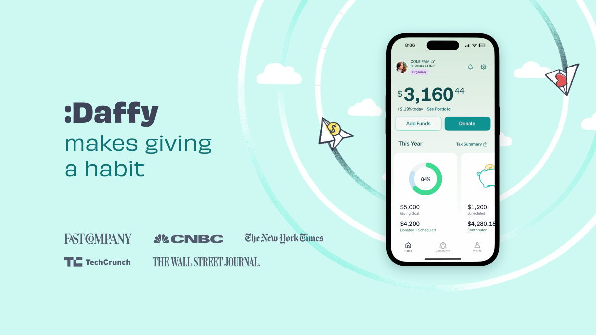 Giving is deeply personal, and building a product around it means respecting that emotional connection while also recognizing a behavioral truth: good intentions often aren’t enough. People want to give, but life often gets in the way - work, family, social life, etc. You often see the same struggle in saving for retirement. Imagine how few people would actually save for retirement if they didn’t have access to tools like a 401(k) that automate the process. That’s exactly what we’re up against in charitable giving. A large hurdle has been the misconception that donor-advised funds (DAFs), tax-advantaged accounts designed specifically for charitable giving, are only for the ultra-wealthy. Daffy is changing that by raising awareness among the 60 million households that already give to charity, offering a simple, flat monthly fee starting at just $3, with no AUM charges -- making DAFs accessible to anyone who wants to give regularly.